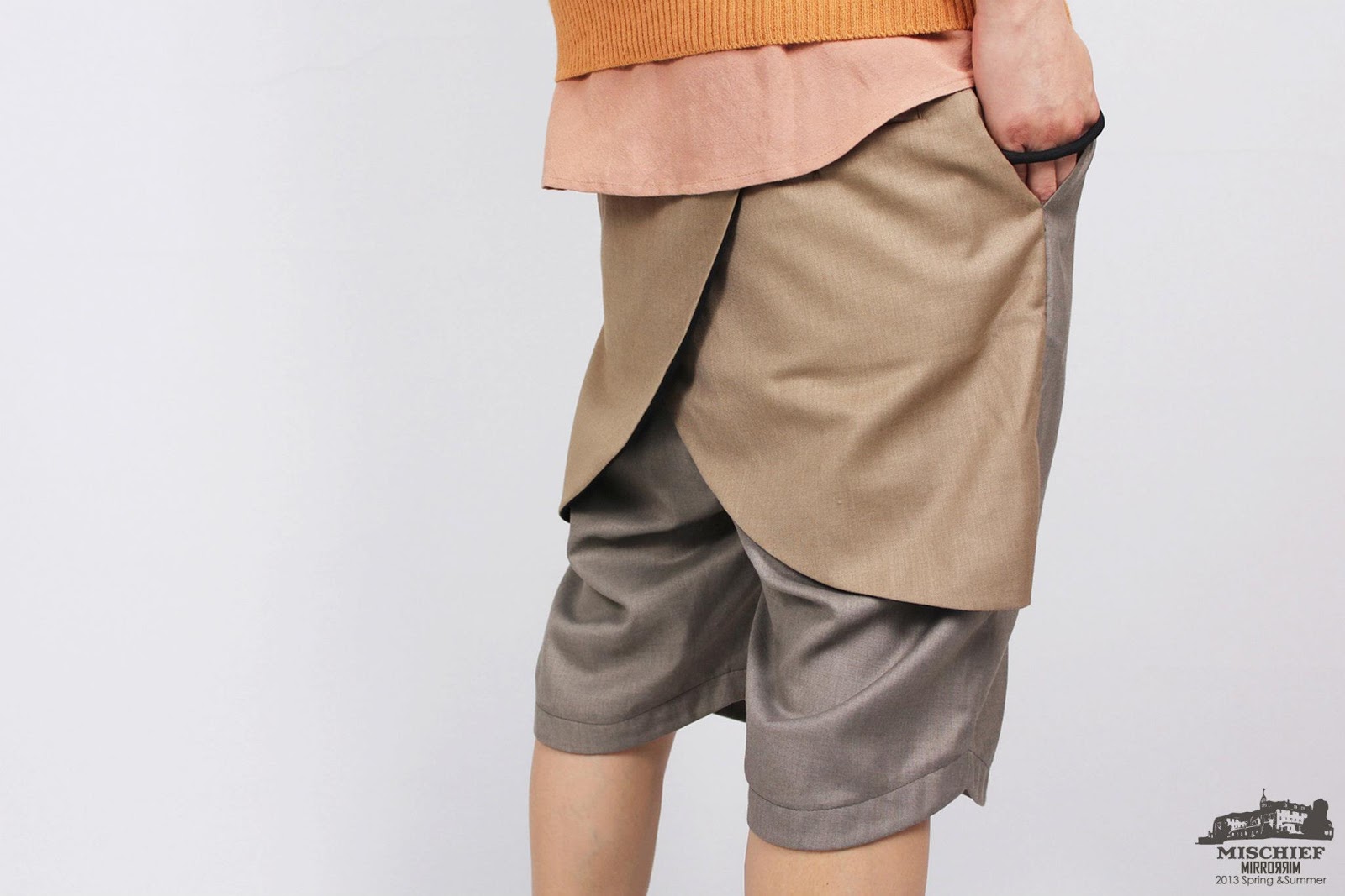 此件西裝短褲使用了傳統高級西裝料質,微微透出時裝絲光 感,擺脫以往對於傳統西裝褲的刻板印